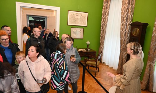 Dzięki tej niezapomnianej okazji mieliśmy możliwość przenieść się w czasie i poczuć atmosferę minionych epok. Nowo otwarty salonik mieszczański wypełniony meblami i obrazami z XIX wieku – a także dziełami Wojciecha i Jerzego Kossaków – przybliżał realia codziennego życia mieszczan przełomu dwóch stuleci. Ekspozycję dopełniła oryginalna suknia ślubna z lat 40. XX wieku. Otwarta na tę okoliczność pierwsza kondygnacja pałacu cieszyła się wyjątkowym zainteresowaniem. Poza autentyczną Mapą Lubinusa z 1618 roku, przybyli goście mogli podziwiać salę niebieską oraz zachwycającą salę plafonową, w której odbył się niezwykły koncert muzyki dawnej w wykonaniu kwartetu Parsandi. Nastrojową atmosferę wieczoru podkreślali pracownicy muzeum w historycznych strojach, którzy z pasją dzielili się wiedzą o ekspozycji, prowadzili rozmowy ze zwiedzającymi na temat historii pałacu, eksponatów i tajemnic muzeum, a przy okazji częstowali słodkimi krówkami.